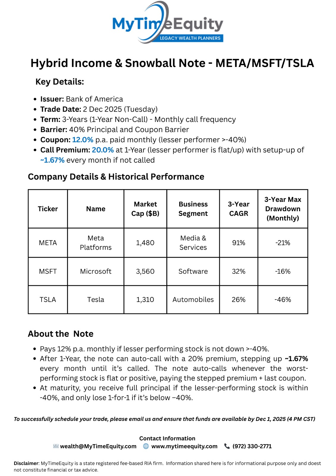02-Dec-2025 - 3Y year Income & Snowball Hybrid Note - META / MSFT / TSLA with a potential return of 32% (1 YR) OR 96% (3 YR)