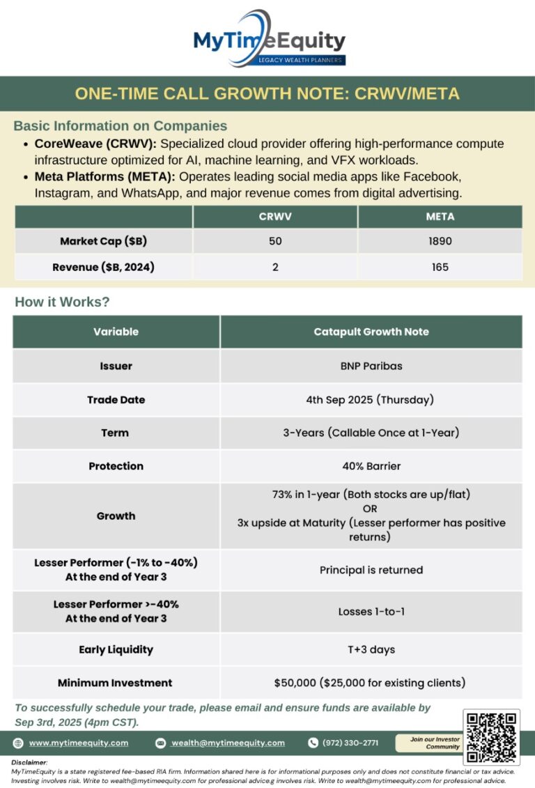 04-Sep-2025 – Catapult Growth Note -CRWV/META – Target Returns 73% in 1-yr or 3x in 3-yrs