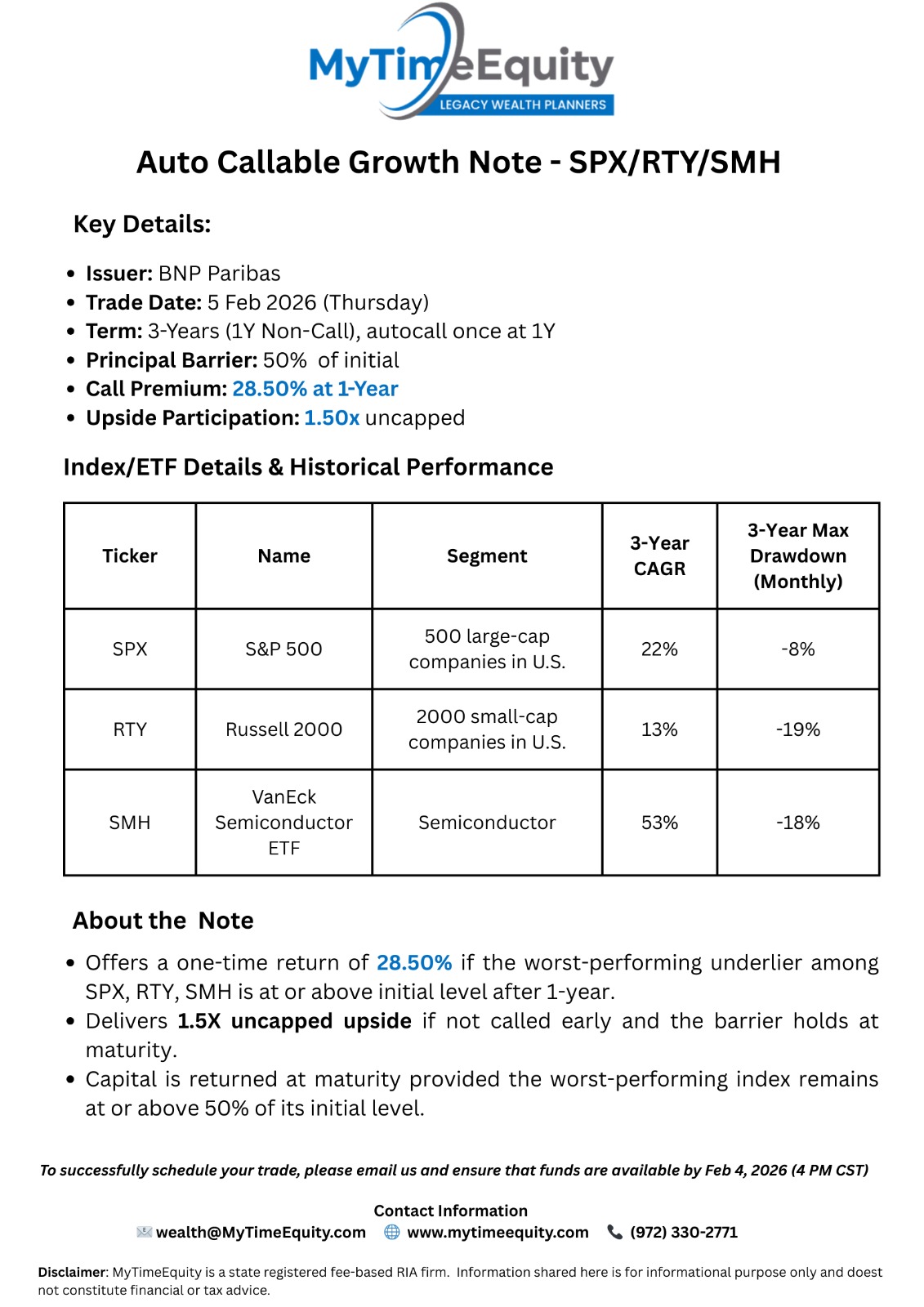 05-Feb-2026 - Catapult Growth Note - 28.5% (1Yr) or 1.5X (3Yr) - SPX / RTY / SMH