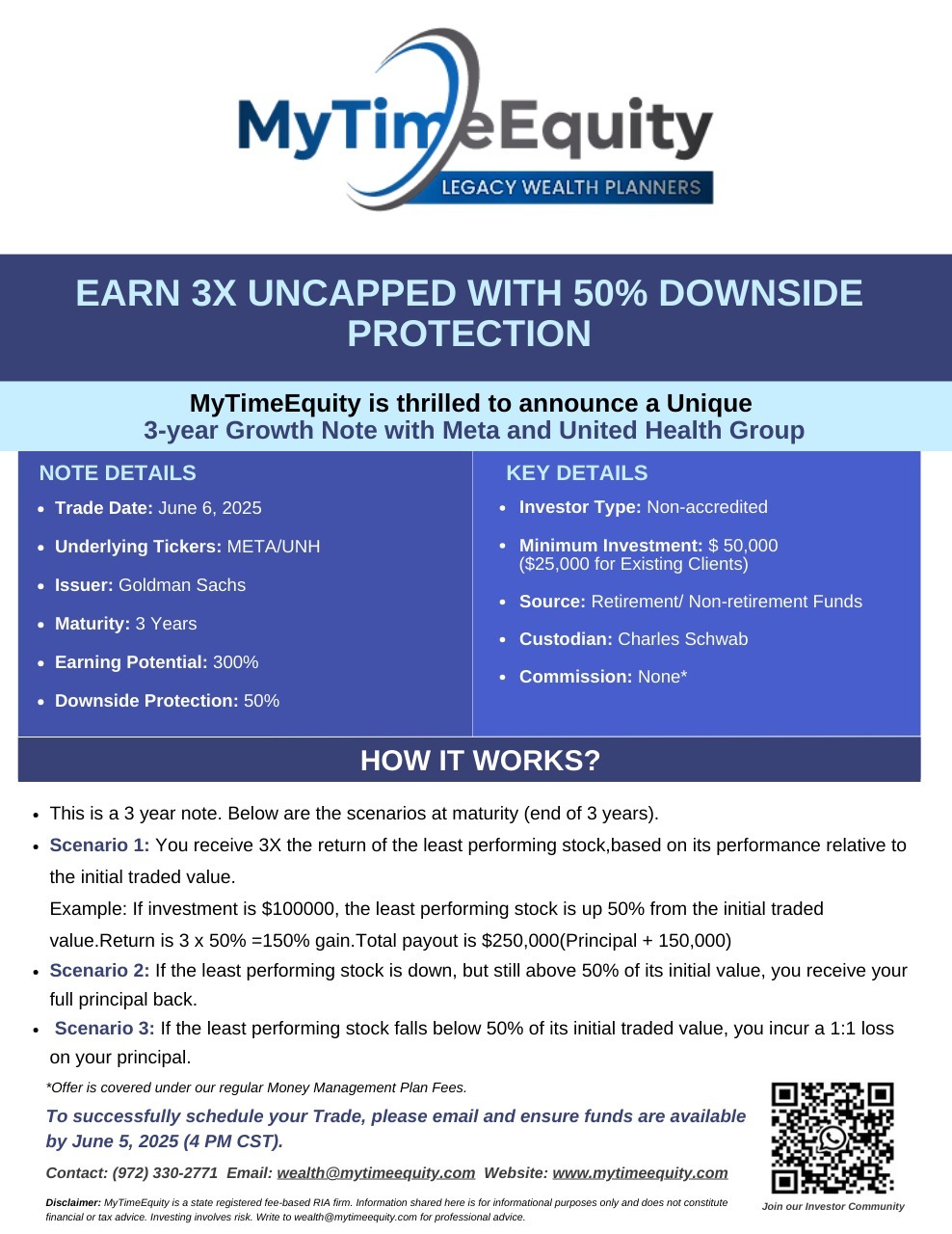06-Jun-2025 – 3 Year Growth Note -Meta & United Health Group – Potential 3X Uncapped returns