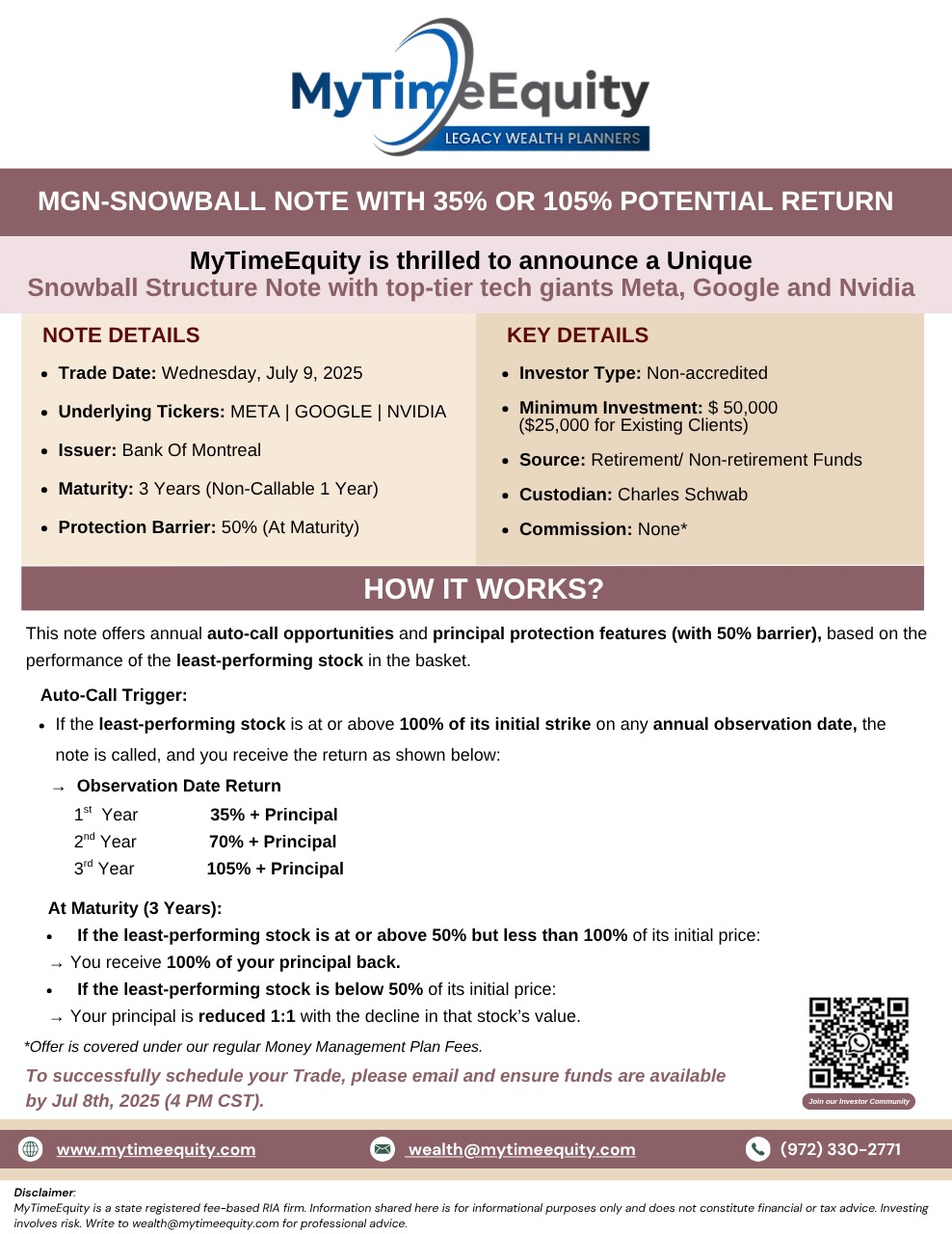 09-Jul-2025 – Snowball Growth Note with Meta | Google | Nvidia – Potential 35% or 105% return
