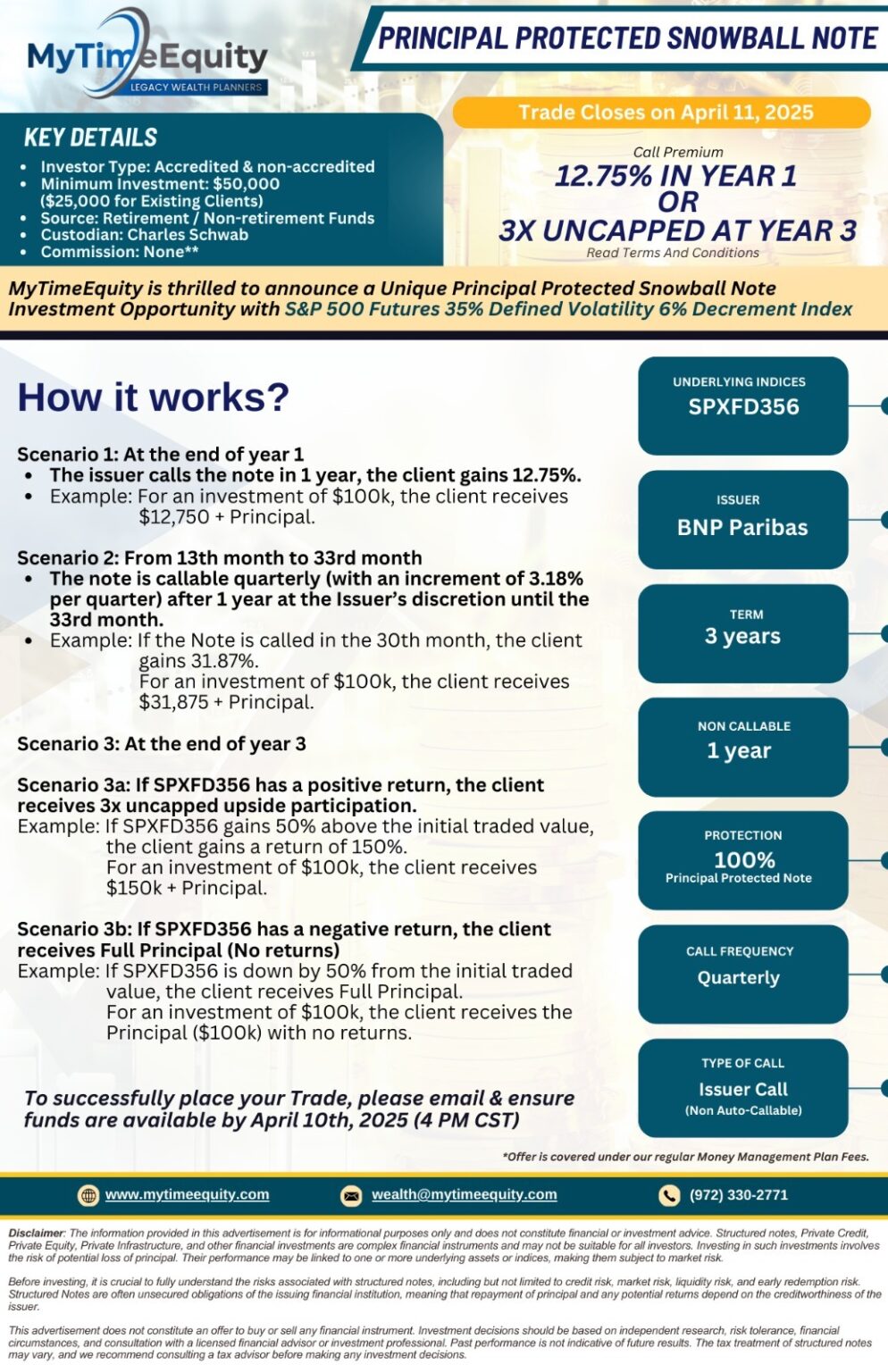 11-Apr-2025 – Principal Protected Snowball Note – SPXFD356 – Potential 12.75% (1 Yr) OR 3X Uncapped (3Yrs)