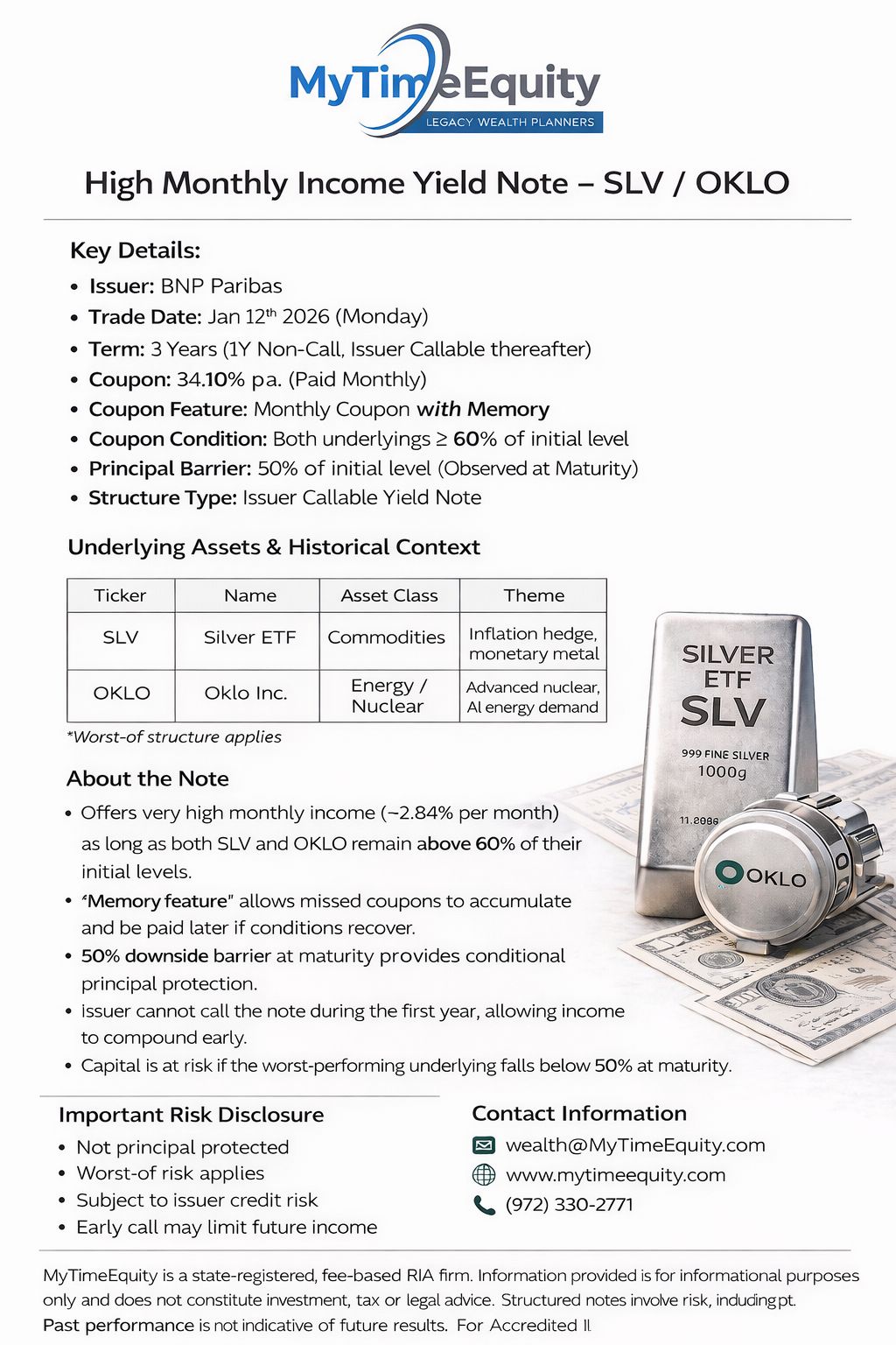 12 Jan 2026 Income Note with Memory SLV / OKLO potential 34.10% p.a