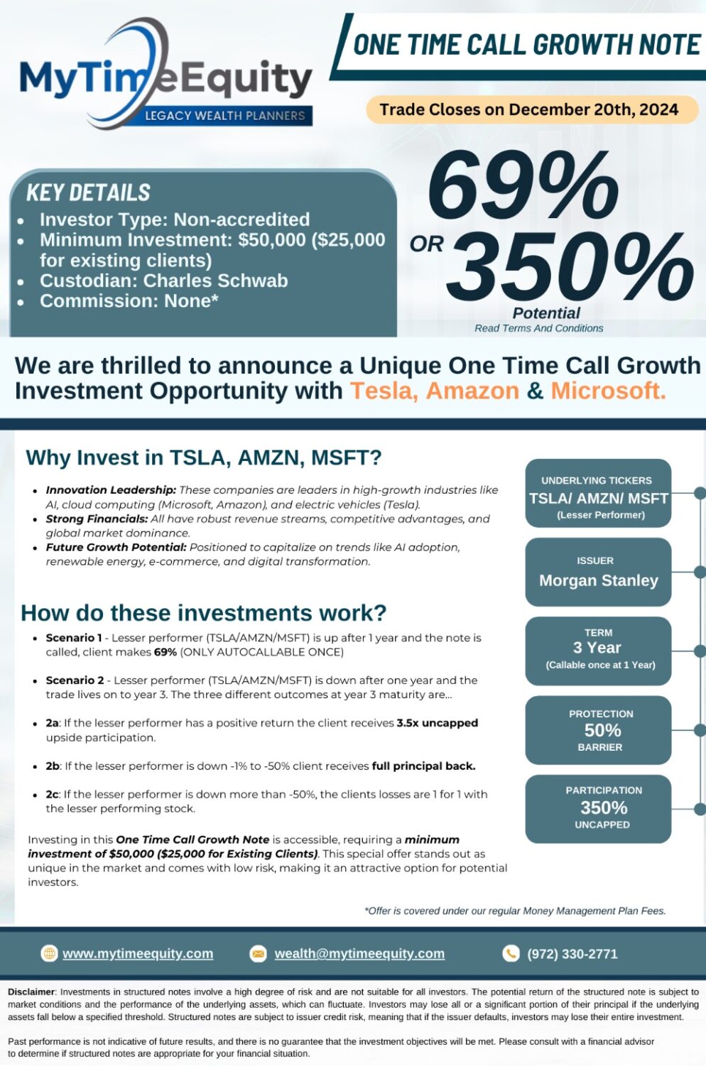 20-Dec-2024 – Growth Note – 69% or 350% – TSLA/AMZN/MSFT