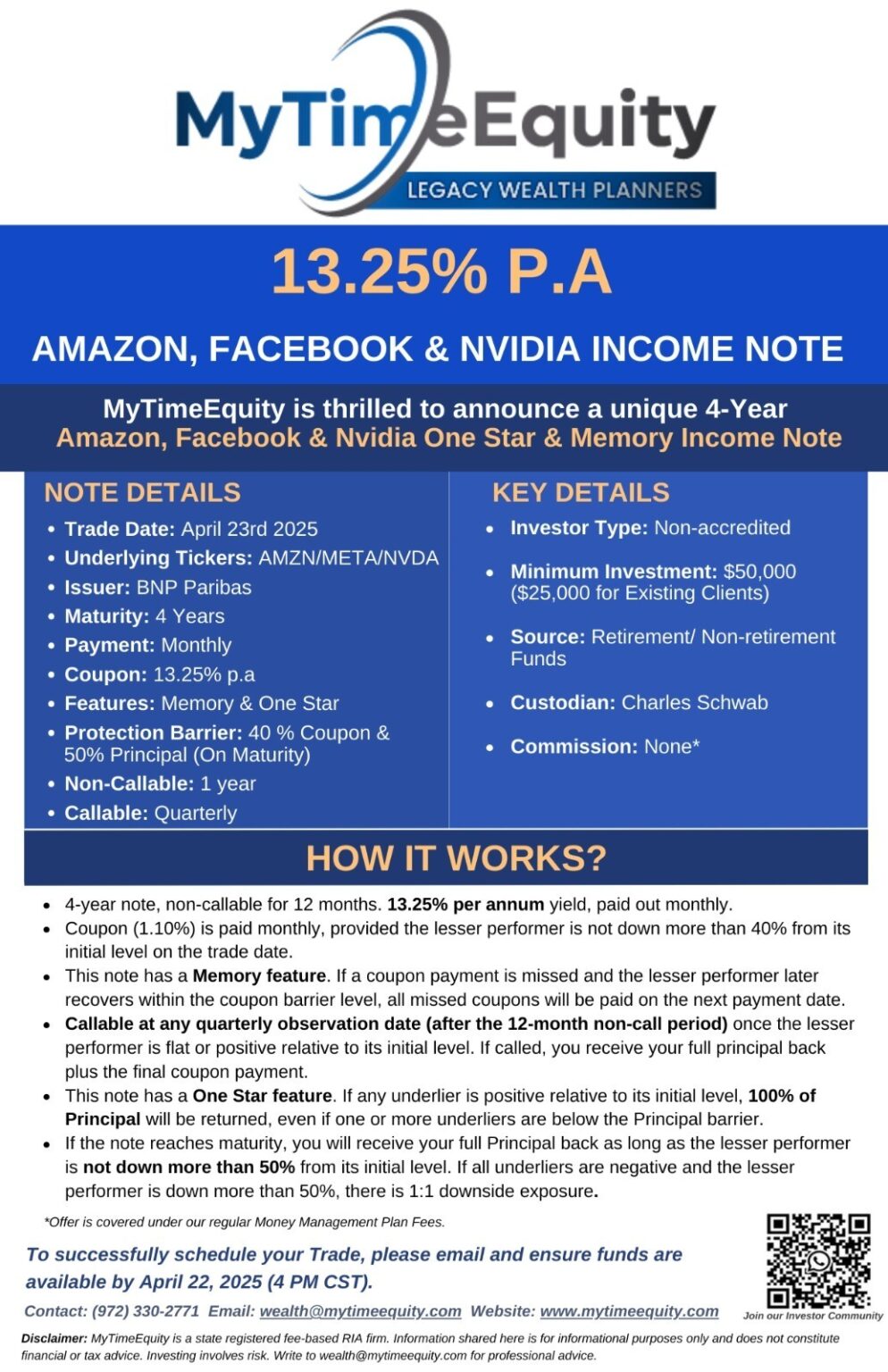 23-Apr-2025 – One Star & Memory Income Note with AMZN/META/NVDA – Potential Income of 13.25% P.A