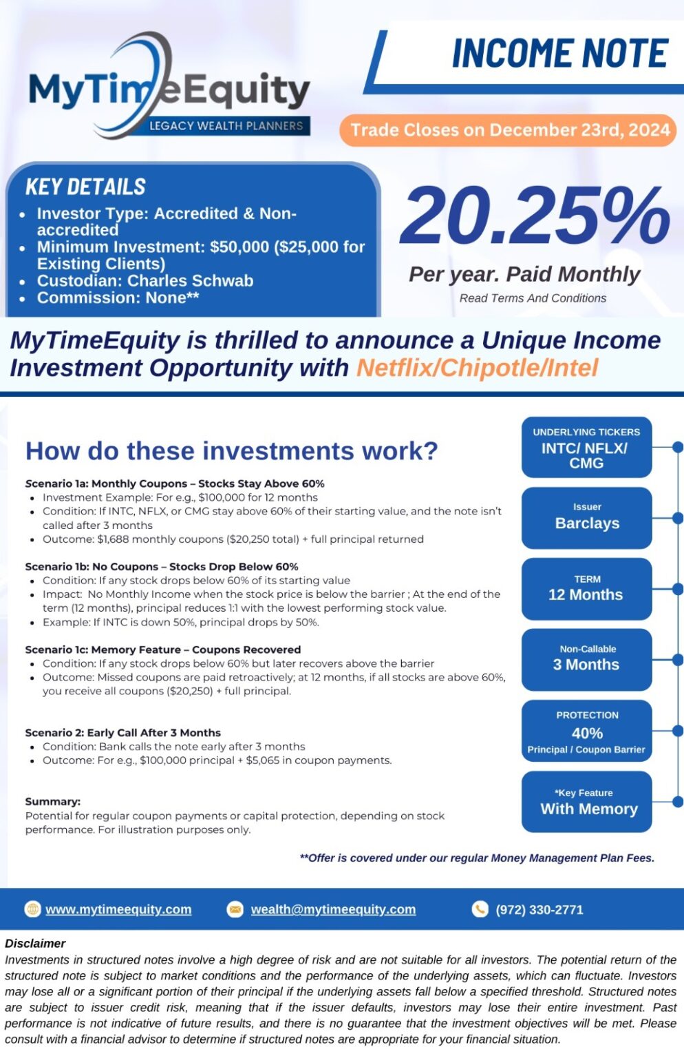 23-Dec-2024 – Income – 20.25% Income – Netflix/Chipotle/Intel