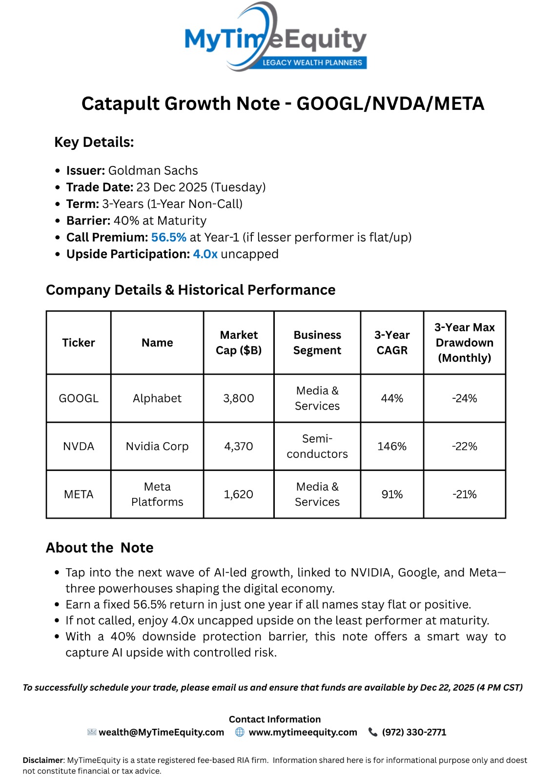 23-Dec-2025 - 3 year Catapult Note - GOOGL / NVDA / META with a potential return of 56.50%(1 YR) OR 4x(3 YR)