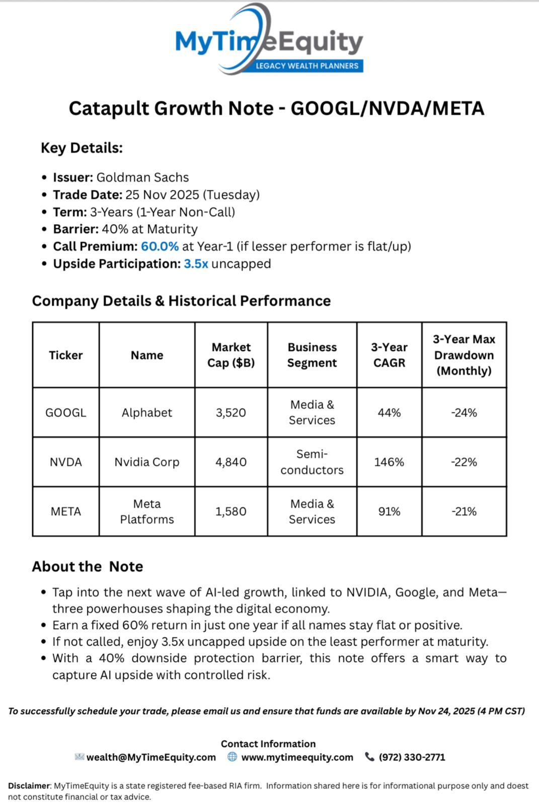 25-Nov-2025 - 3 year Catapult Note - GOOGL / NVDA / META with a potential return of 60%(1 YR) OR 3.5x(3 YR)