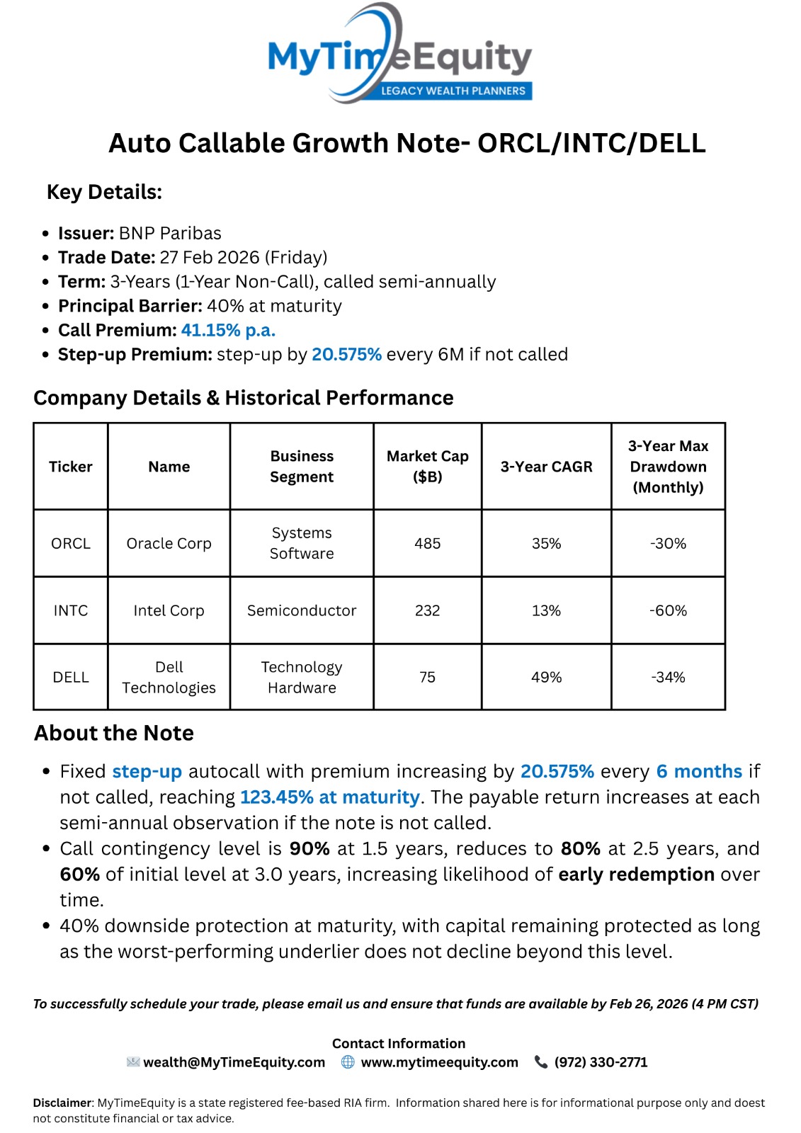 27-Feb-2026 - Step Up Note - 41.15% (1Yr) or 123.45% (3 Yr) - ORCL / INTC / DELL