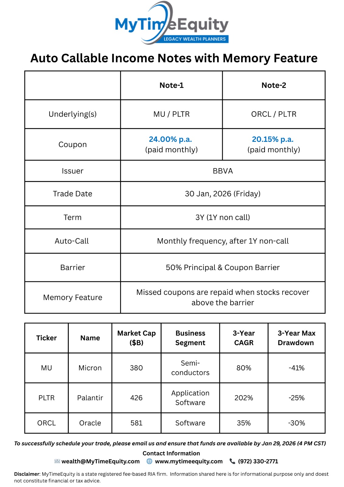 30 Jan 2026 Income Note with Memory ORCL / PLTR potential 20.15% p.a