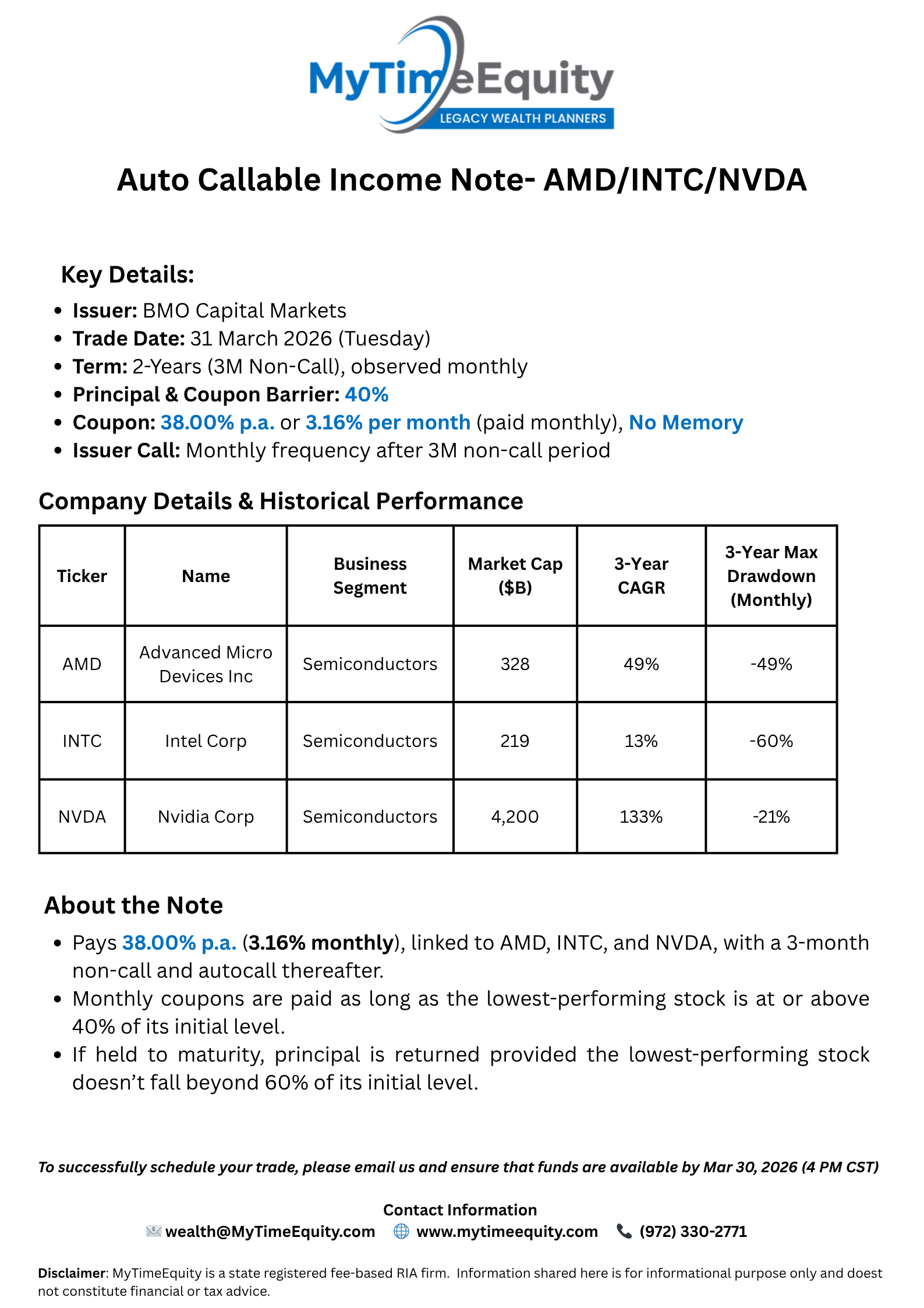 31 March 2026 - Auto-Callable Income Note - 38.00% [1 Yr] or 3.16% per month [paid monthly] - AMD / INTC / NVDA