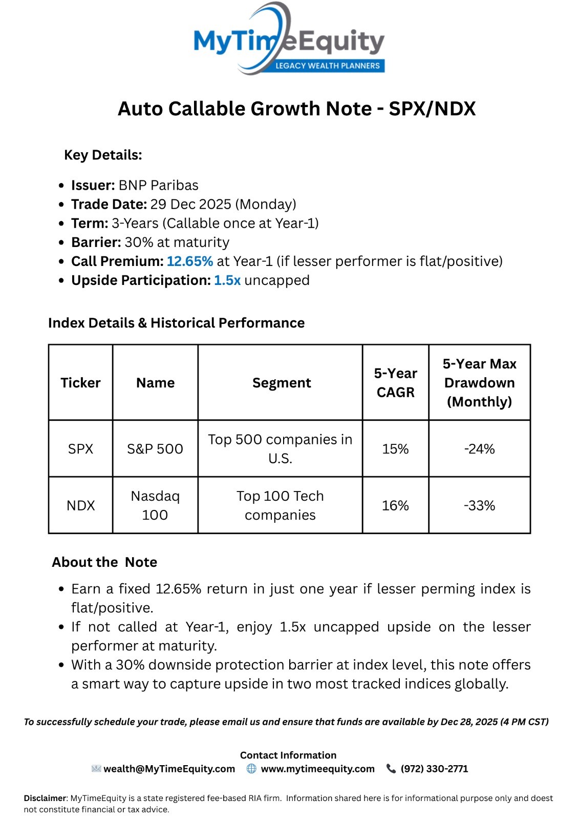 Index Catapult Growth Note - SPX/NDX potential 12.65%(1yr) or 1.5X(3 yrs)