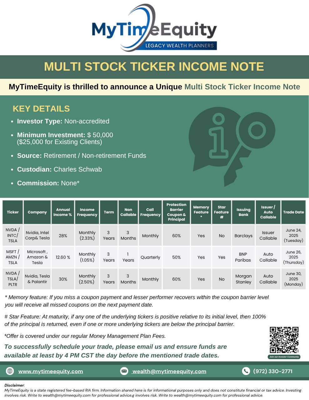 June 4th week – Multi-Stock Income Note with Memory & Star Feature – NVDA/INTC/TSLA/AMZN/MSFT/PLTR- Potential 30% P.A